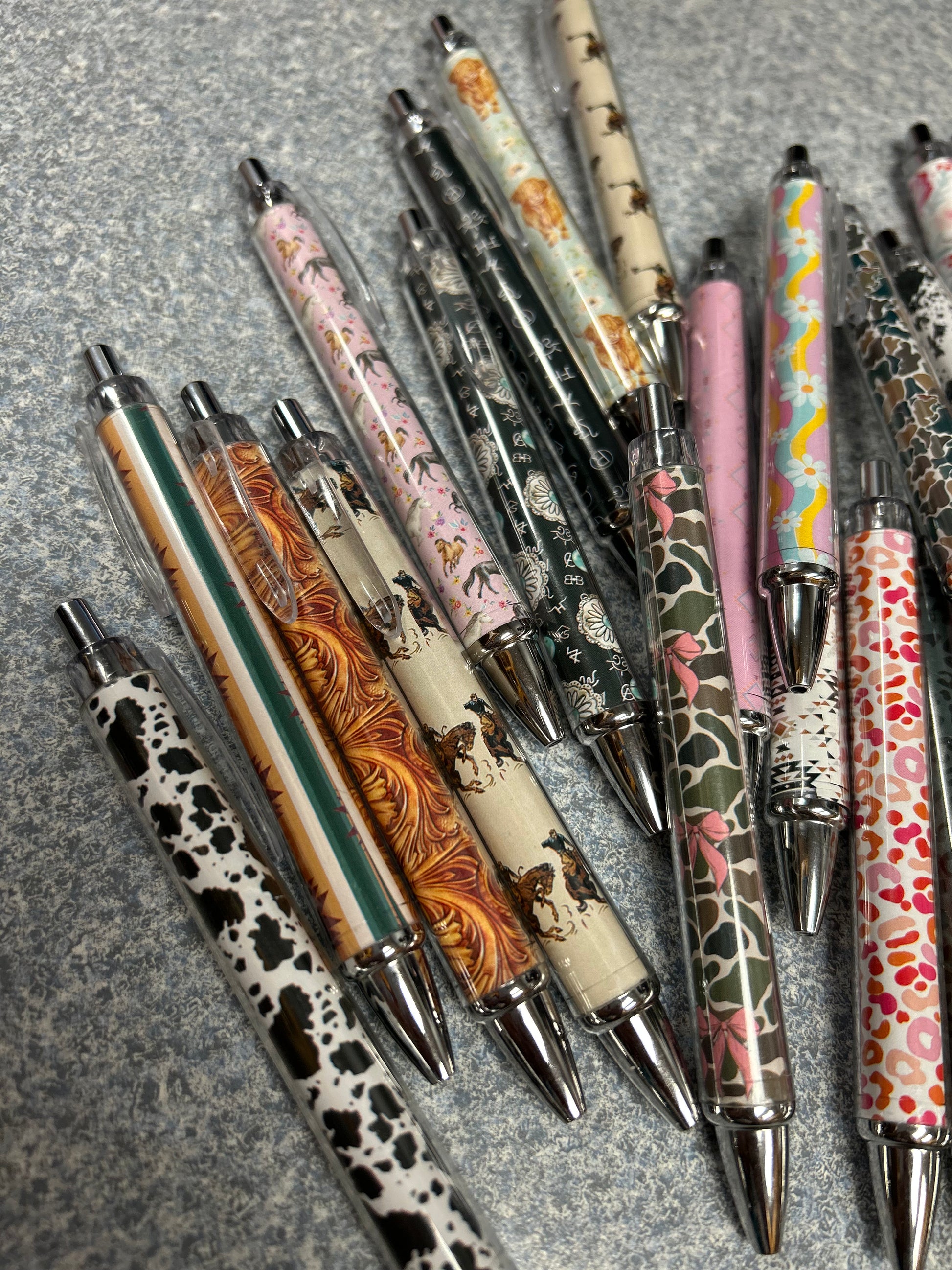 CONCHO, CAMO, CAMO/BOWS, MULTI LEOPARD, AZTEC, FLOWERS, BRANDS, HORSES, TOOLED PAISLEY, COWPRINT, BRONC, HIGHLAND COW