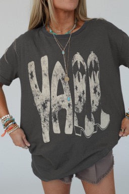 Carbon Grey Vintage Yall Stars Boots Graphic Tee