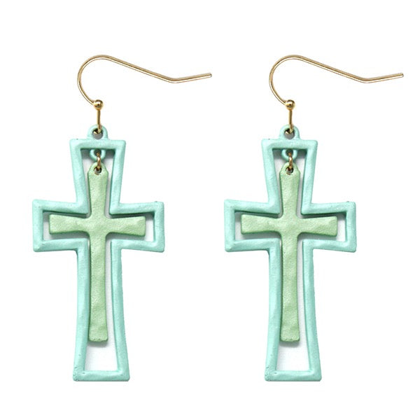 COLOR COATED DOUBLE LAYER CROSS EARRINGS