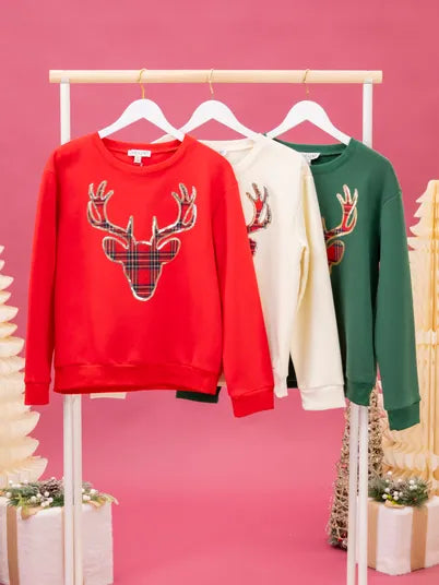 LONG SLEEVE TOP WITH PLAID DEER