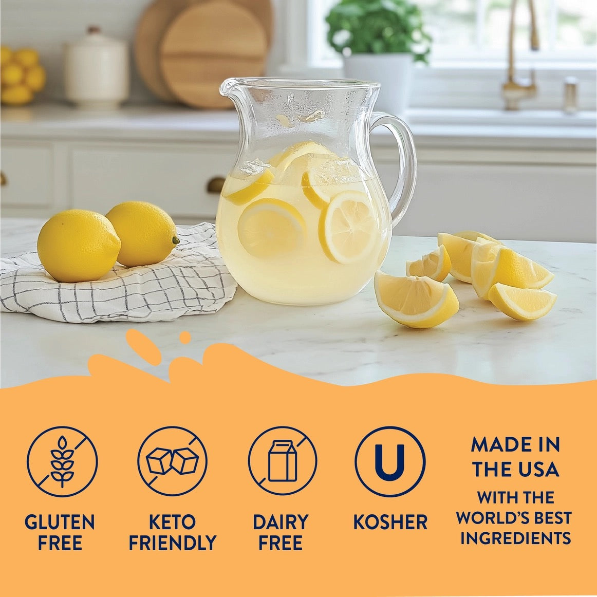 ntroducing the latest innovation from Jordan's Skinny Mixes: Sugar Free Lemonade Concentrate! 🍋 Dive into the refreshing zest of summer with our newest addition to the Skinny Mixes family. Crafted to tantalize your taste buds, our Sugar Free Lemonade Syrup Concentrate delivers all the tangy goodness of traditional lemonade without the guilt. With 0 grams of sugar, a mere 10 calories, and just 2 grams of carbs per serving, this concentrate is the perfect companion for your health-conscious lifestyle. Each bottle contains enough concentrate to whip up 12 servings of delicious lemonade, making it ideal for gatherings, picnics, or simply keeping a pitcher in your refrigerator for easy sipping throughout the day. 🚫 0g Sugar. 10 Calories. 2g Carbs. 🍹 12 Servings per Bottle. 💧 Easy Batch and Serve for Gatherings. 🥤 Perfect for All-Day Sipping. 🍋 Captivating Lemonade Flavor.