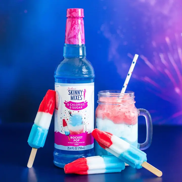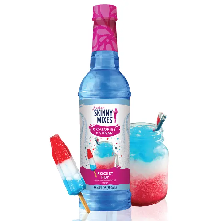 Introducing the latest sensation from Jordan's Skinny Mixes: Sugar Free Rocket Pop Syrup. Blast off into flavor with this nostalgic blend of cherry, lime, and blue raspberry without any of the guilt. With 0 sugar, 0 calories, and 0 carbs, indulge freely in this exciting syrup while staying true to your health goals.