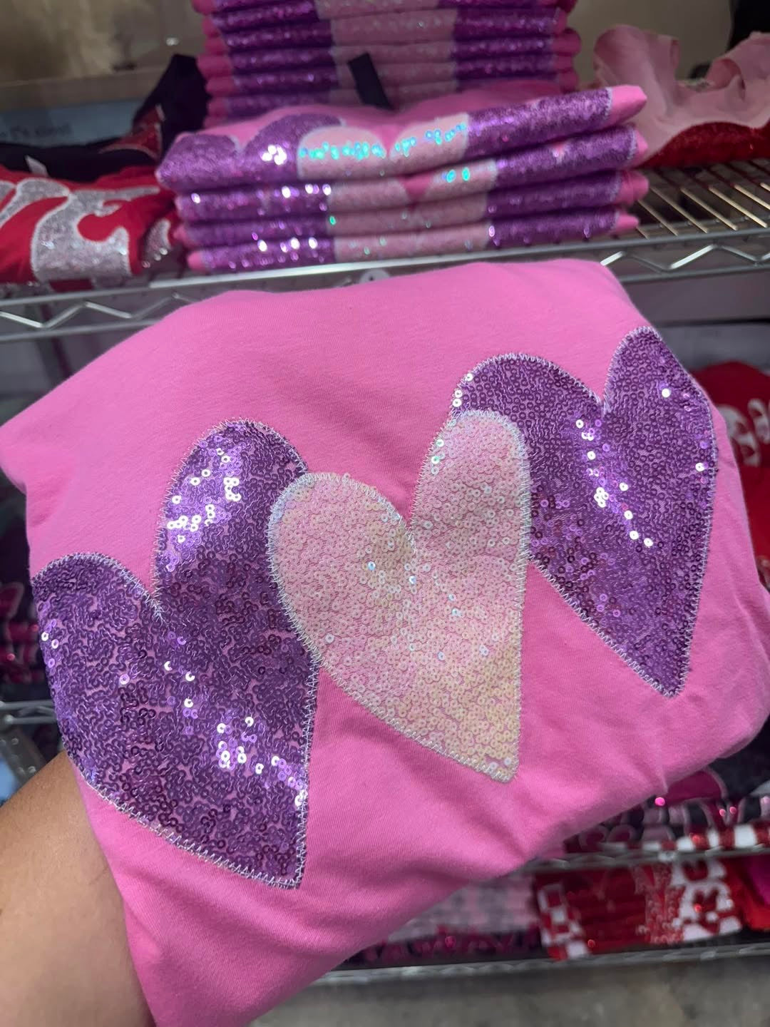 EMBROIDERED SEQUIN HEARTS T-SHIRT