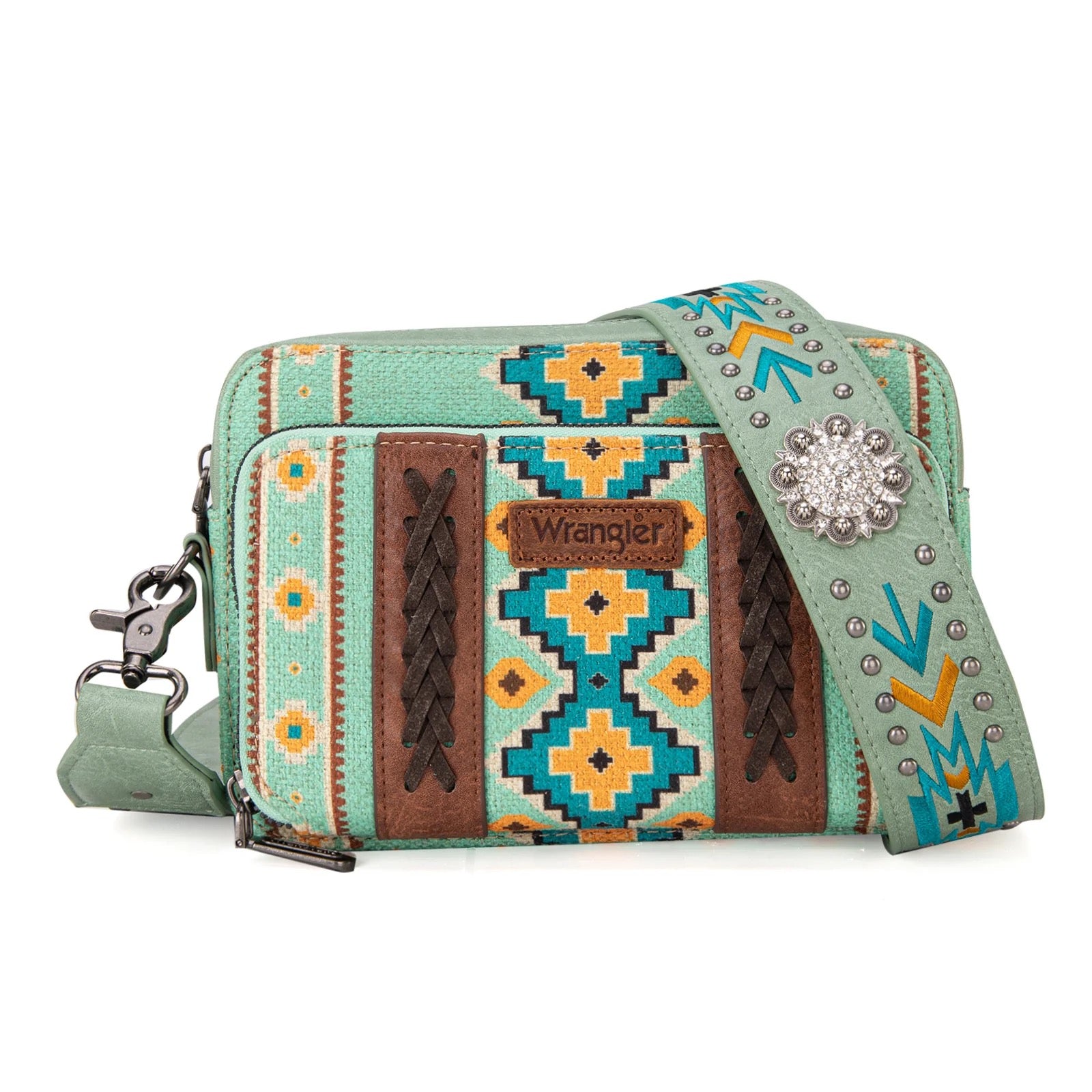 Wrangler Aztec Printed Crossbody Purse With Wallet Compartment